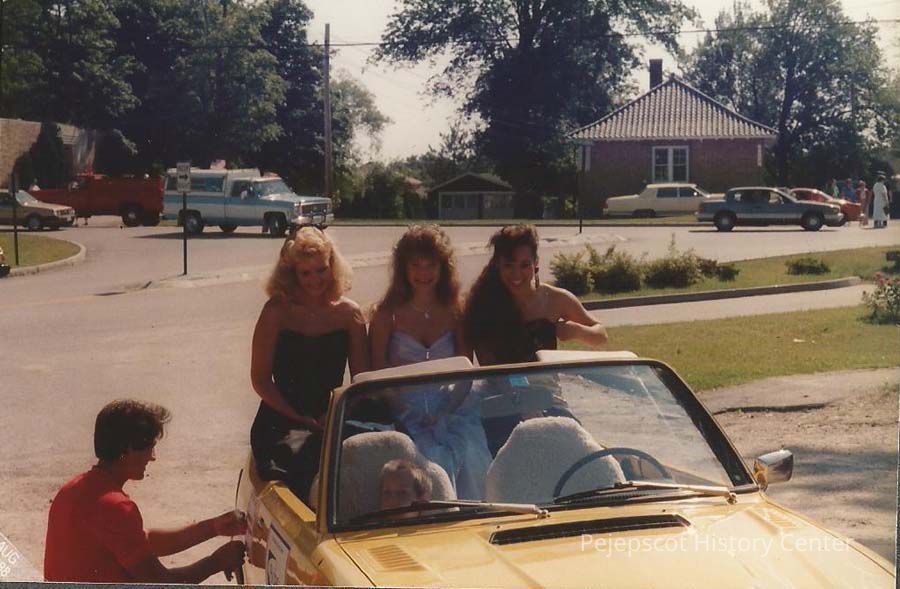 A color photograph of Angie Coady, Autumn Ison and Lisa Kelly before the Bath Heritage parade. 7/4/1988
