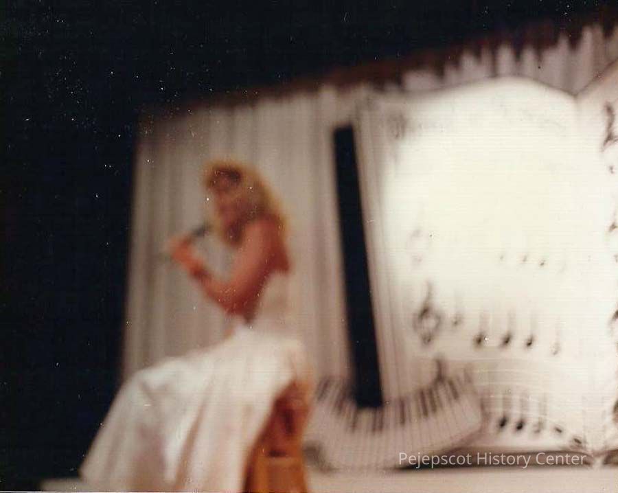 A color photograph of Angie Coady contestant number 5, presenting her talent.