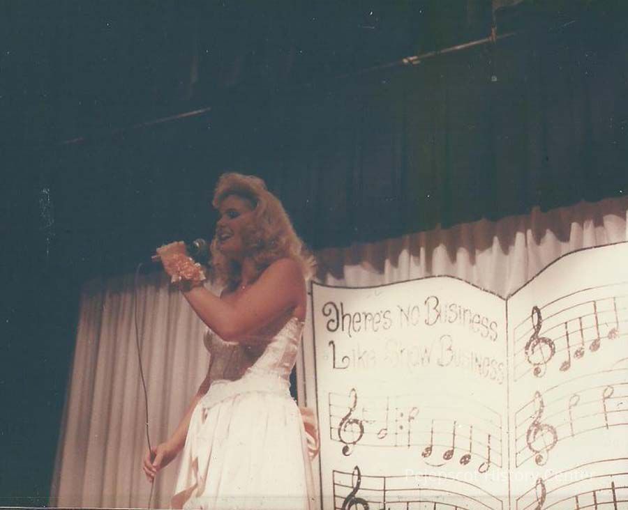 A color photograph of Angie Coady contestant number 5, presenting her talent.