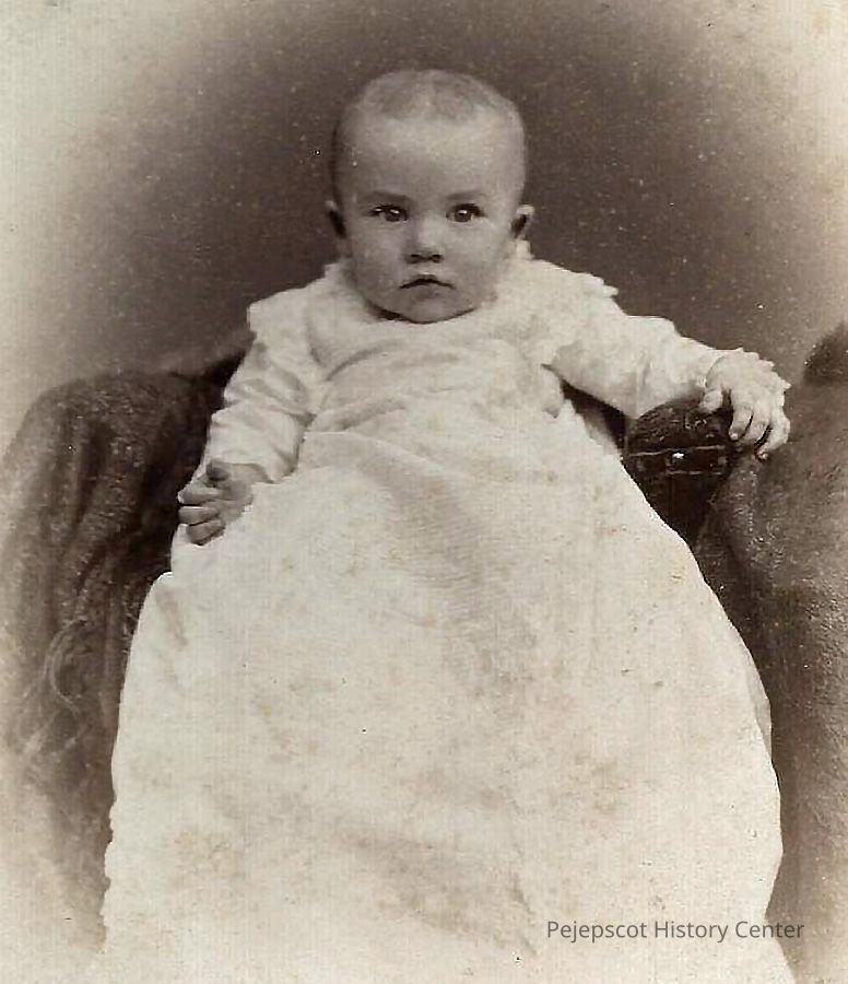 A B/W photograph of baby "Miss Annie Leretta Rogers", written on the back, "8-1/2 months old 6/18/1888.