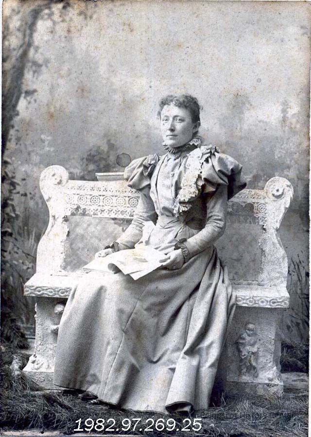 A B/W photograph of Annie Pennell Merriman.
