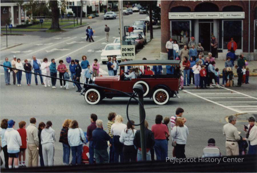 A color photographic view of an antique car in the 250th parade. 10/7/1989