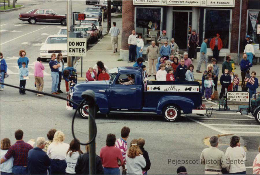 A color photograph of an antique vehicle in the 250th Anniversary parade. A 1947 truck with a sign reading "Old Reliable." 10/07/1989
