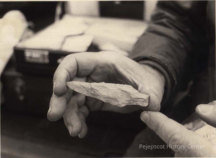 A B/W photo of a Native American arrowhead. This photo was published in the Times Record 5/13/1992.