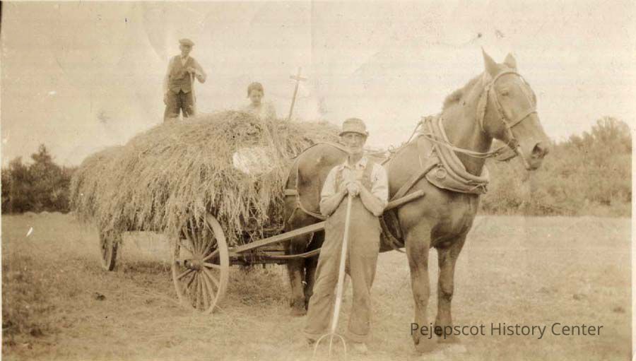 A B/W photograph of Arthur Jack and a load of hay. Probably taken in Pejepscot. Undated