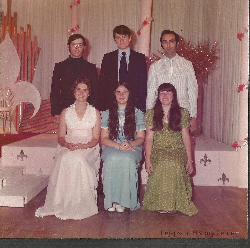 At the Teen Queen Ball sitting are Cathy, Jane and Patricia, standing are Neil, Bryan and Gene.Collection