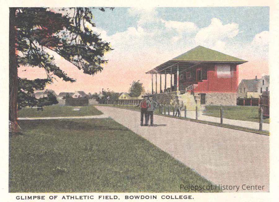 Postcard view of the Athletic Field and Stadium, Bowdoin College, Brunswick, Maine. Date unknown.