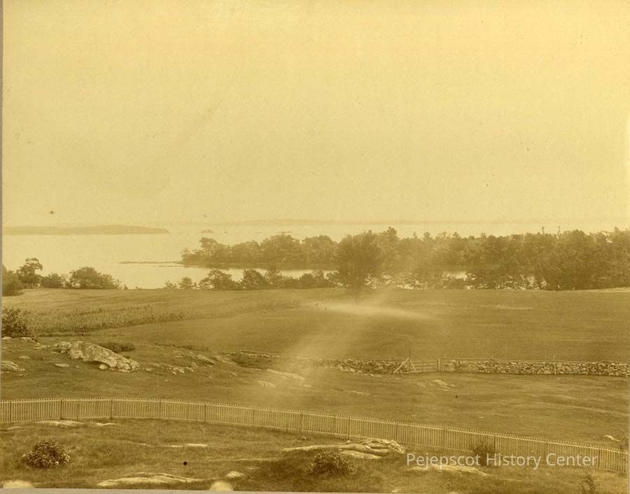 A sepia-toned photo of the view from Auburn Colony, circa 1900, Harpswell, Maine. Undated.