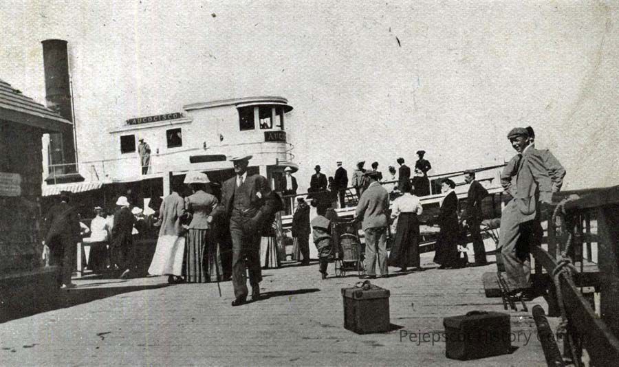 A B/W photograph of the arrival of the Aucocisco.