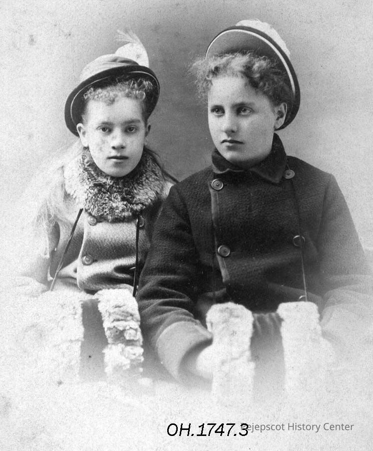 A B/W photograph of two young girls, Augusta Curtis and Belle Curtis. Not dated.