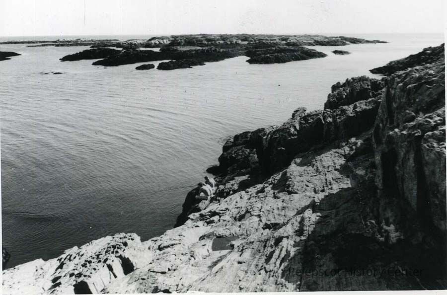A black and white photograph of the Buffalo, taken from Bailey Island, ME. Dated August 25, 1938.