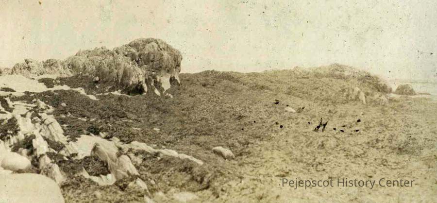 A B/W photograph of bluffs on Bailey Island, ME. Undated.