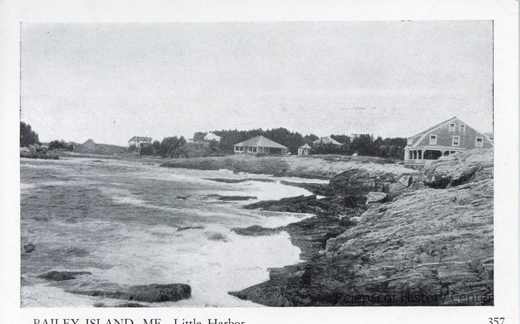 Black and white photo postcard of Little Harbor, Bailey Island, ME.Collection