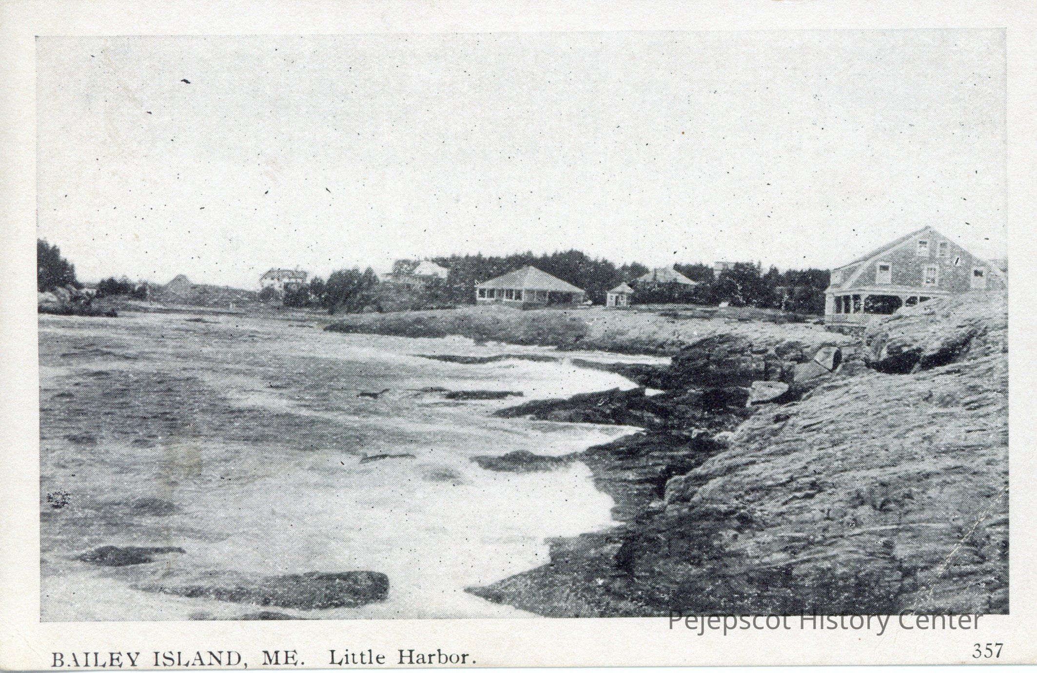 Black and white photo postcard of Little Harbor, Bailey Island, ME.Collection