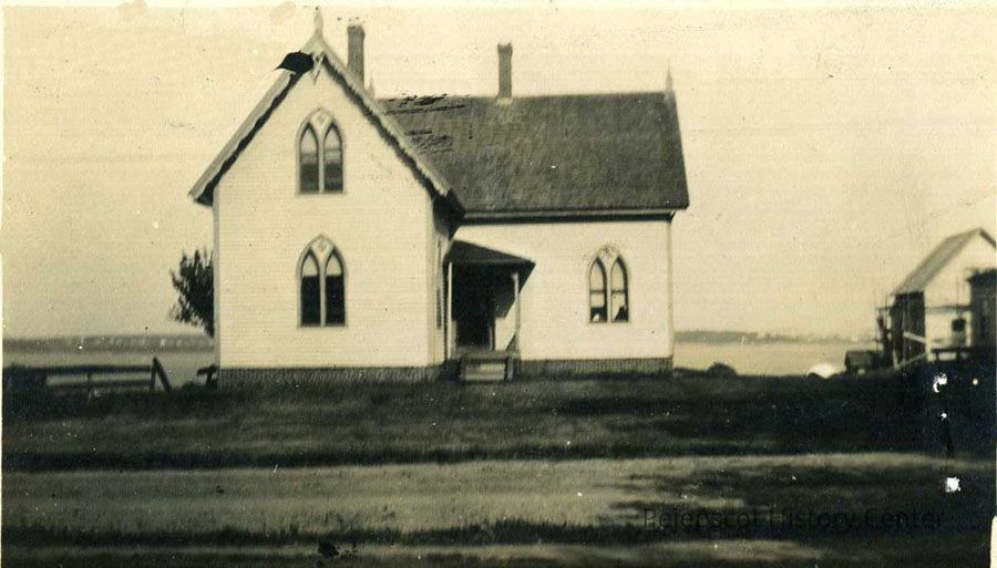 A B/W photographic view of the Baptist Parsonage.. The house has windows which may indicate that it was once a church.