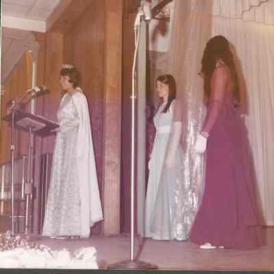 Barbara Aldridge going through her gown competition while Doris Bernier M. C. isCollection