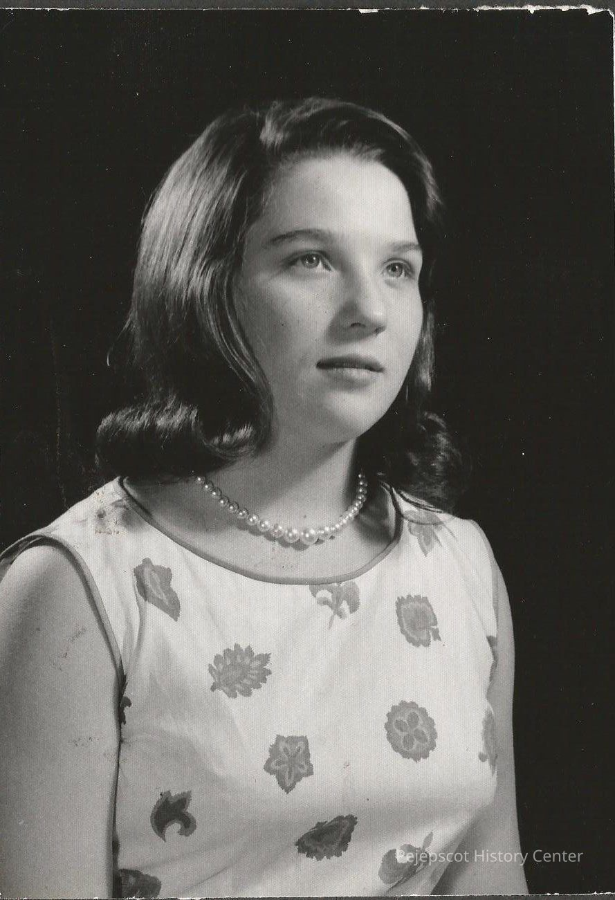 Barbara is the daughter of Mr. & Mrs. Alden Bonang of Mere Point Road, Brunswick. She is 13 years old and a Freshman at B.H.S. This photo dates from 1964-65 when she was a contestant in the Brunswick Teen Queen Pageant.