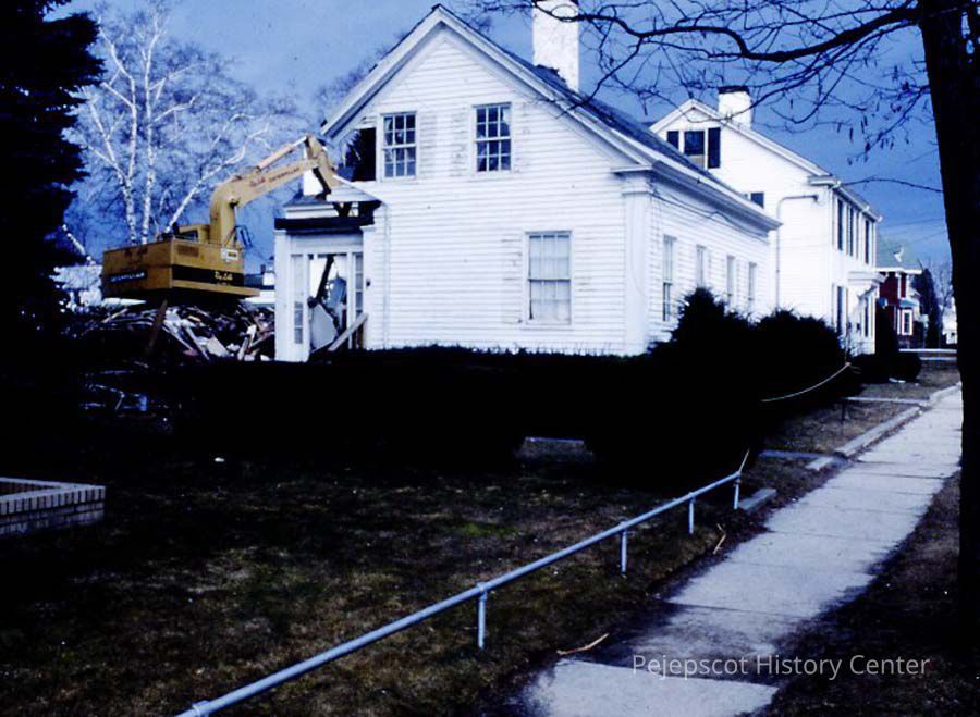 A color slide of the Baribeau House on Pleasant Street being demolished.
