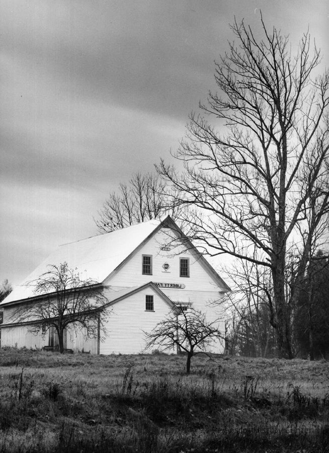 A B/W photograph of the barn on Tom and Mary Skolfield's property (next to Merriconeag Farm) Harpswell. Tom and Mary Skolfield's home. 1986.