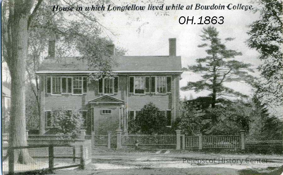 A picture postcard view of the Barrows-Longfellow-Emmons house, 25 Federal Street, Brunswick, ME. This is the house that Henry Wadsworth Longfellow lived in while attending Bowdoin College. Also known as Barrows-Emmons house. Not dated.Collection