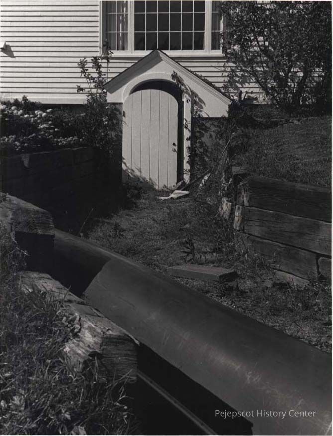 A B/W photograph of a basement door at the Livesay Farm in Pennellville. 10/1983.