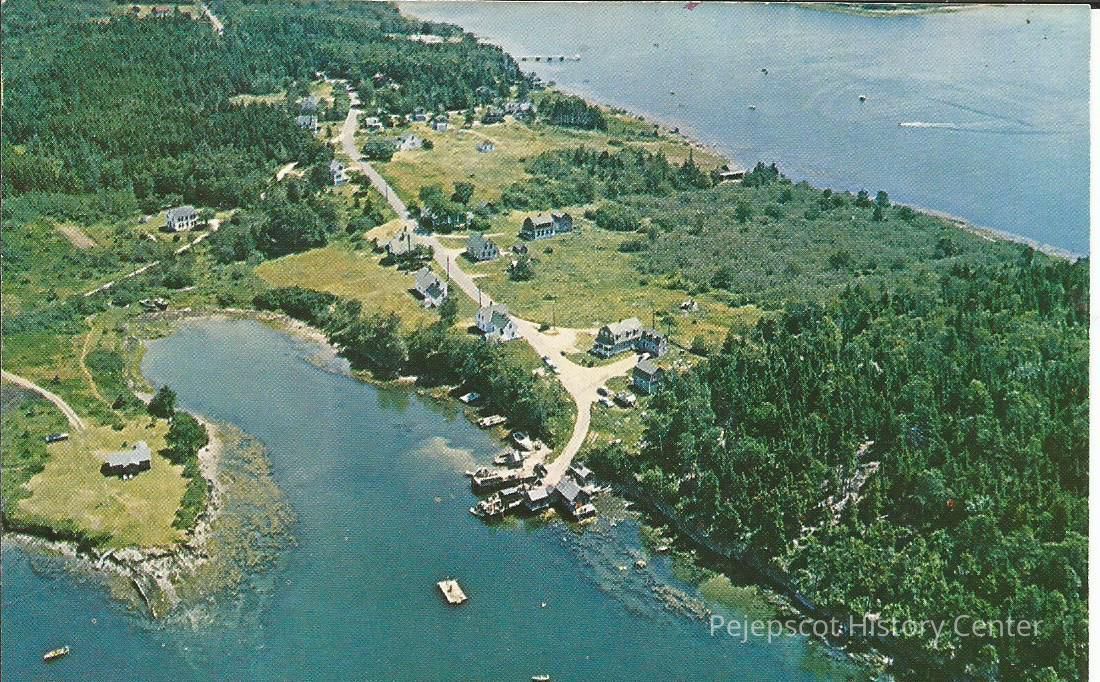 A color picture postcard South Harpswell, Maine of an aerial view of the basin at the entrance to Basin Cove.