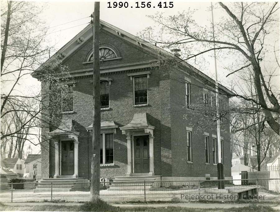 A B/W photograph of the Bath Street School now (1990) owned by Bowdoin College.
