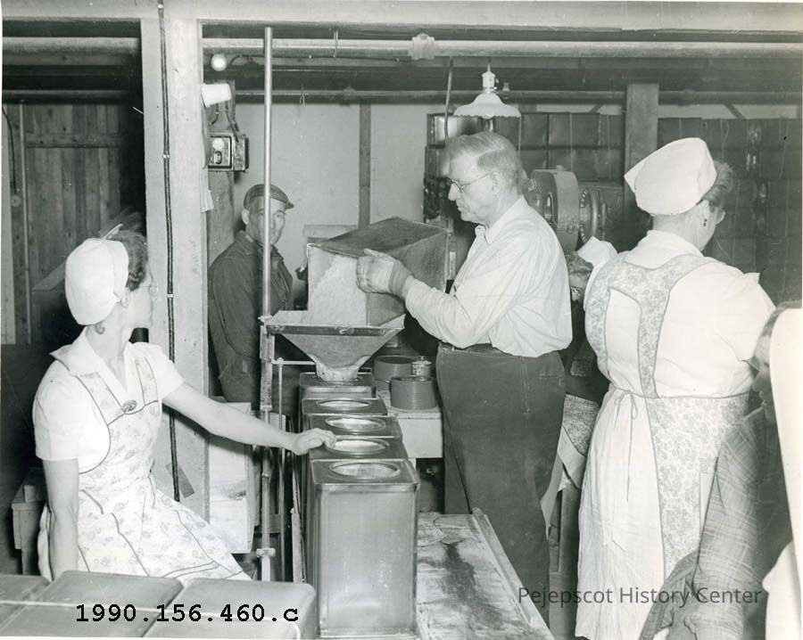 A B/W photograph of potatoes being processed at a Division of Baxter Canning Company, Hartland, Maine. Undated