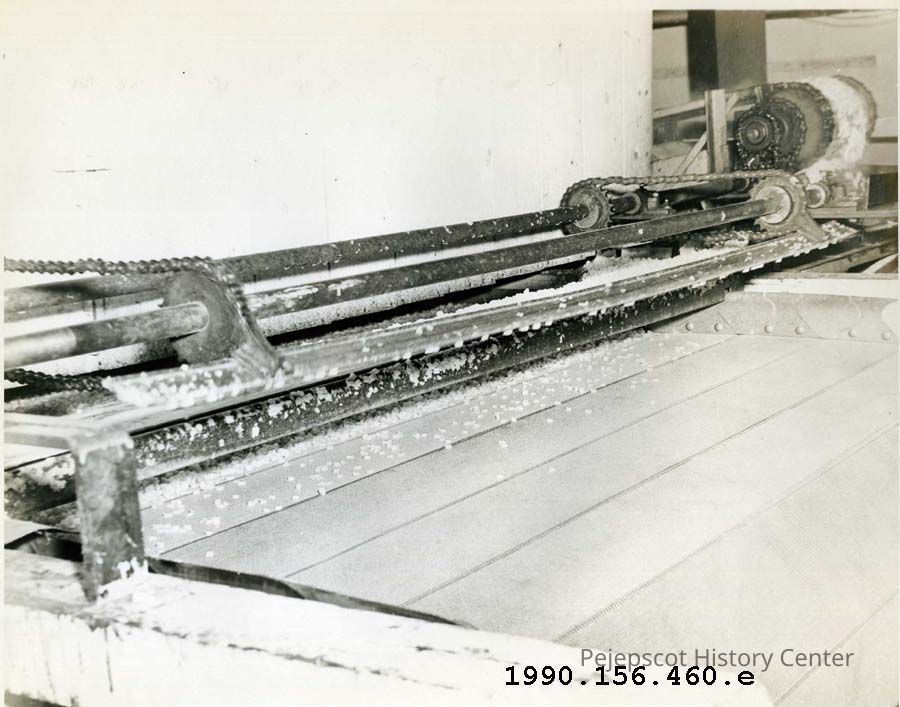 A B/W photograph of potatoes being processed at a Division of Baxter Canning Company, Hartland, Maine. UndatedCollection
