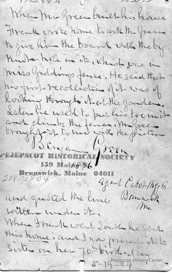 A B/W photograph of Benjamin Green, agent for Cabot Mfg. Co. Photo not dated.