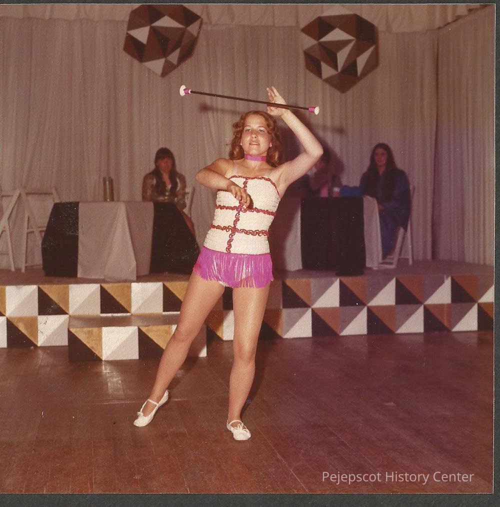 Bernadette Menard Contestant #1 practicing her baton routine at dress rehearsal.Collection