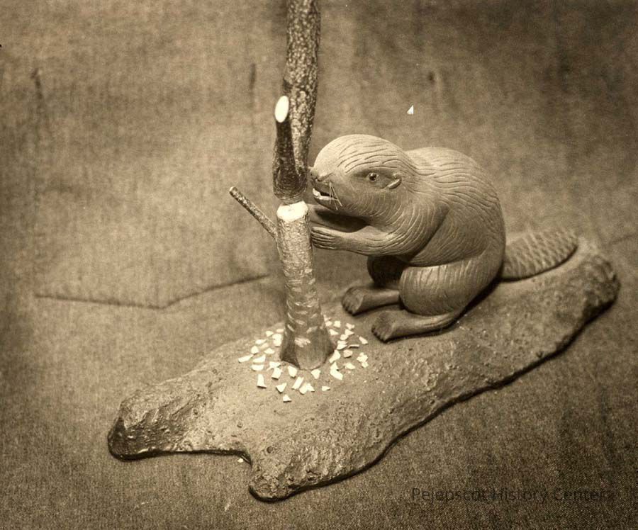 A black and white photo of a wooden beaver, carved by Elmer Berquist of Topsham, appeared in The Times Record in Brunswick, Maine, on 4/6/1981, accompanying an article about his wood carvings.Collection