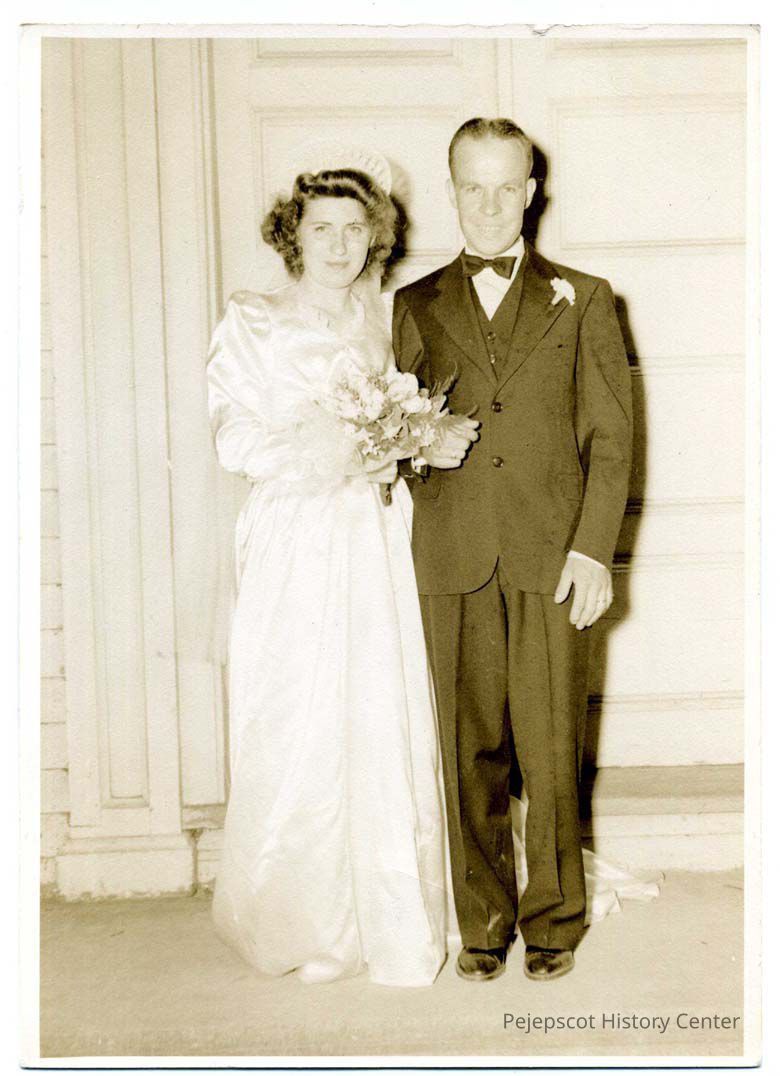Wedding photo of Betty White of Topsham and her new husband. Undated