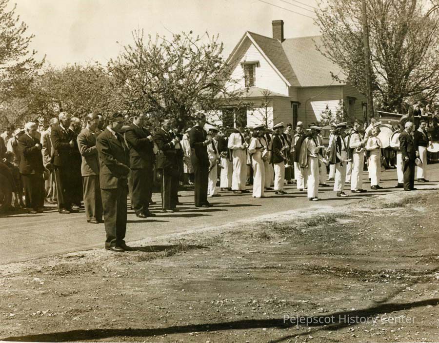 A B/W photograph of the Brunswick High School Band. Marked on the accession sheet, "perhaps Memorial Day." Undated