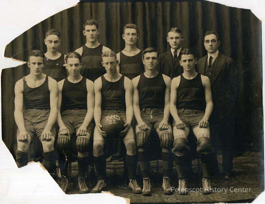 A B/W photograph of Brunswick High School boys basketball team. 1922.