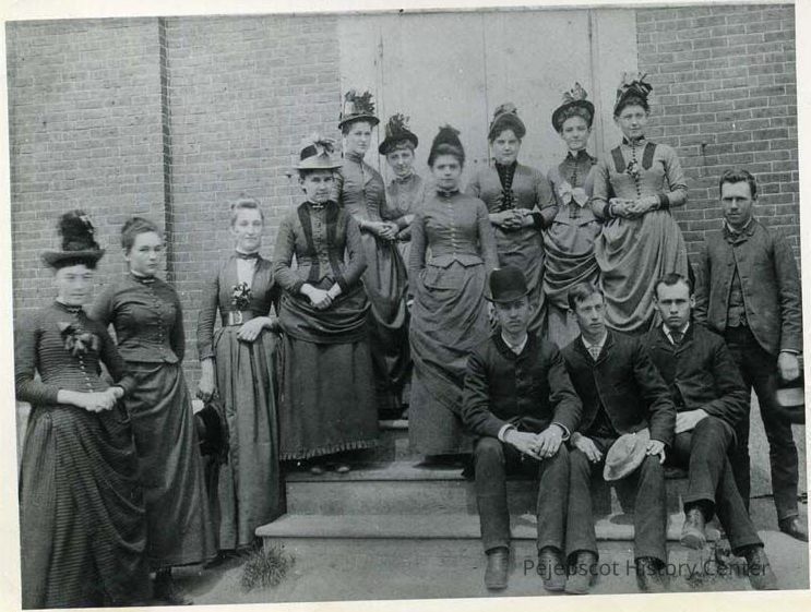 Black & white photograph of the Brunswick High School Class of 1888. The second boy from right could be Charles Pennell. Date ca. 1888.