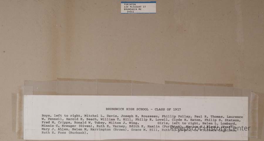 A B/W photograph of the Brunswick High School Class of 1917.