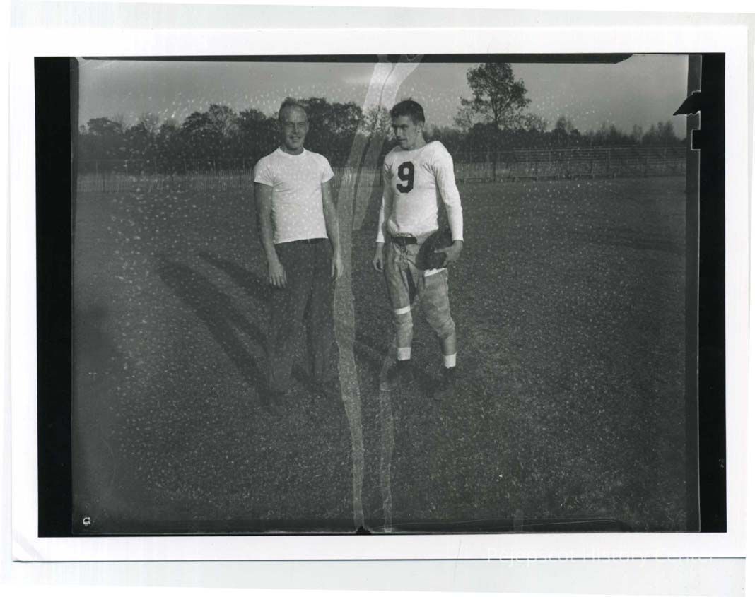 BHS football coach Tucker and player, John Engerski pose for the camera on Edwards Field