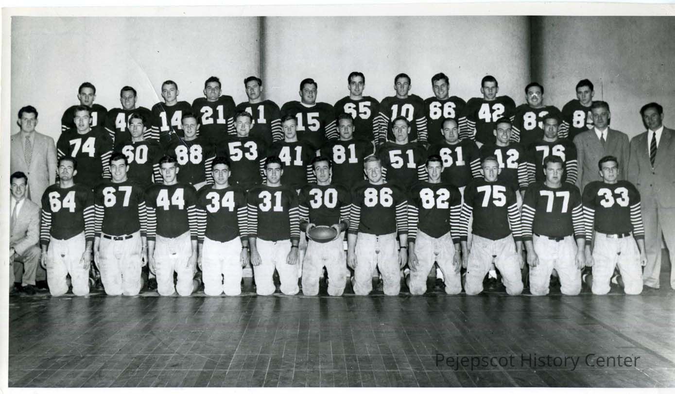 The BHS football team about 1945: #41 is Frank Laviguer and #51 is Bill Dube, Jr. Undated