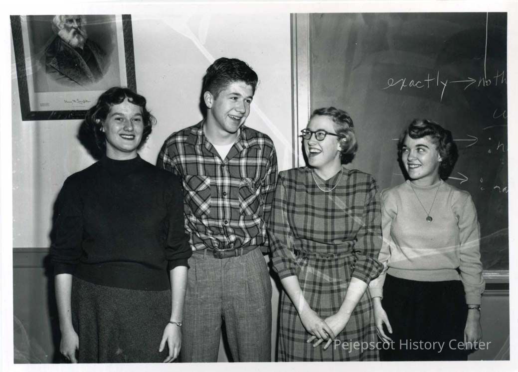 The BHS officers for the Class of 1954 pose for the camera; Jacqueline Souci, secretary; Scott McLean, president; Phyllis Curtis, vice president; and Mary Crowley, treasurer.