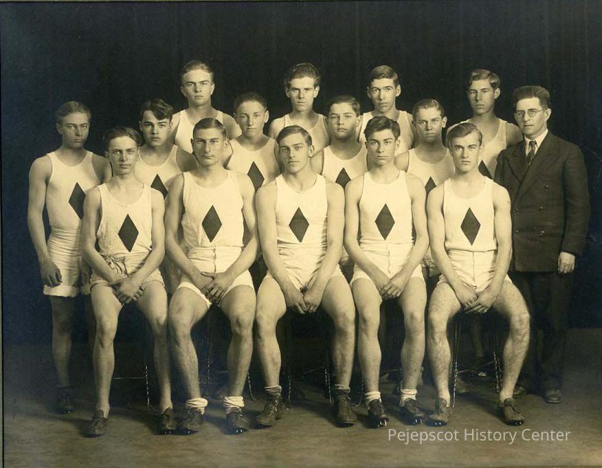 Black & white photograph of the Brunswick High School track team, circa 1920.