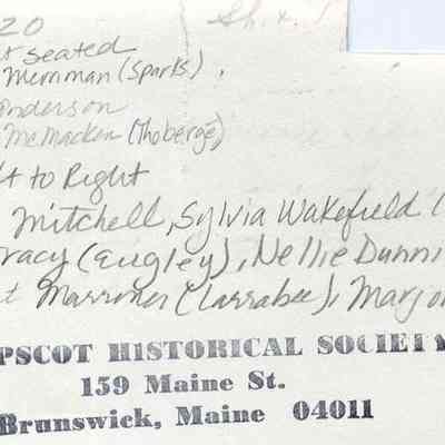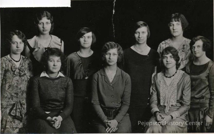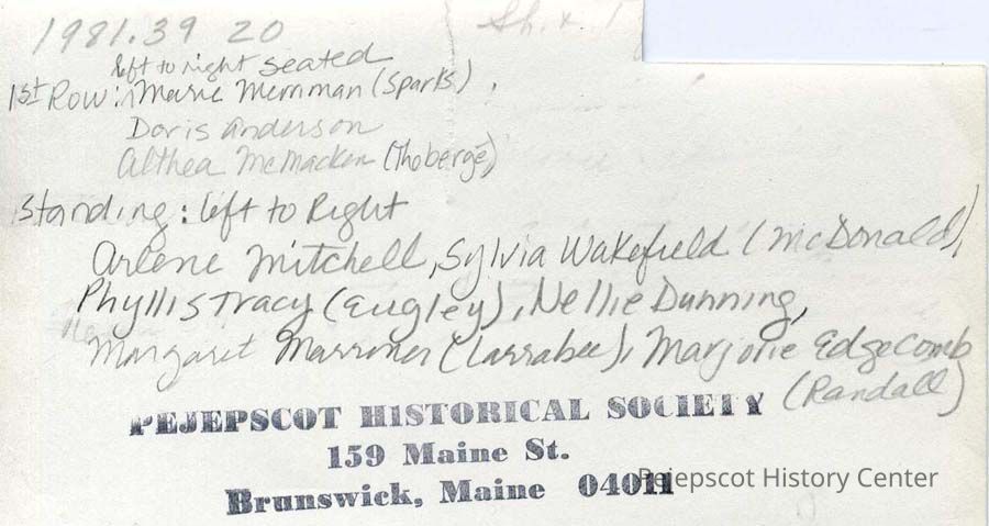 Standing (L to R): Arlene Mitchell, Sylvia Wakefield (McDonald), Phyllis Tracy (Eugley), Nellie Dunning, Margaret Marriner (Larrabee), Marjorie Edgecomb (Randall).