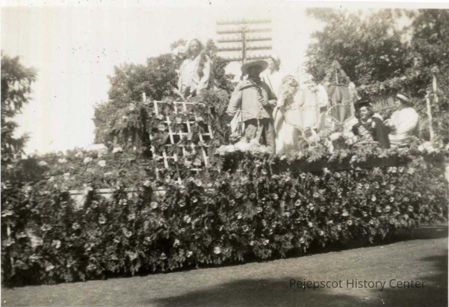 A B/W photograph of the Bicentennial Parade showing a float. Brunswick, Maine. 7/4/1939.