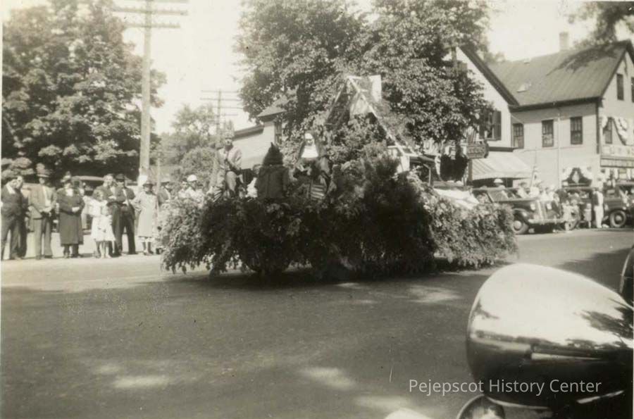 A B/W photograph of a Bicentennial Parade float. Brunswick, Maine. 7/4/1939.