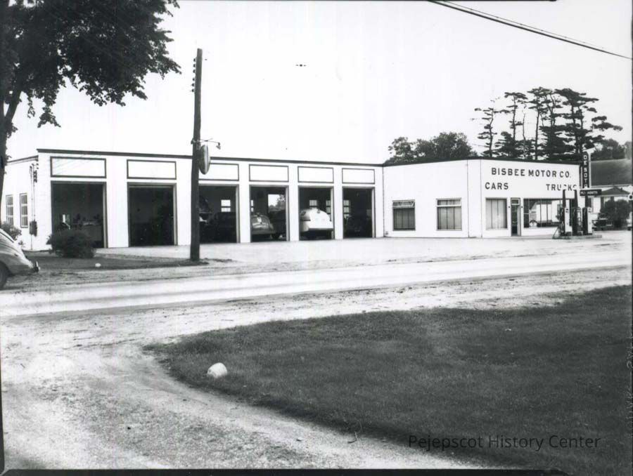 A photo of Bisbee Garage on Pleasant Street, Brunswick, ME 1947