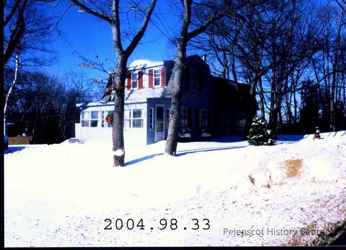 A colored photograph of the Bisson's House, Route 24, Orr's Island. Photo taken with snow on the ground. c. Jan. 1966