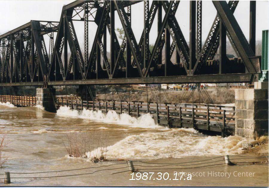 A color photograph of the Black Bridge on Mill Street. Brunswick, Maine. April 2, 1987