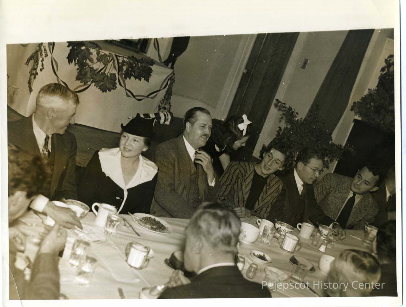 Leverett Sattonstall, Mrs. Sumner Sewall, and Governor Sewall at a BNAS banquet. Undated