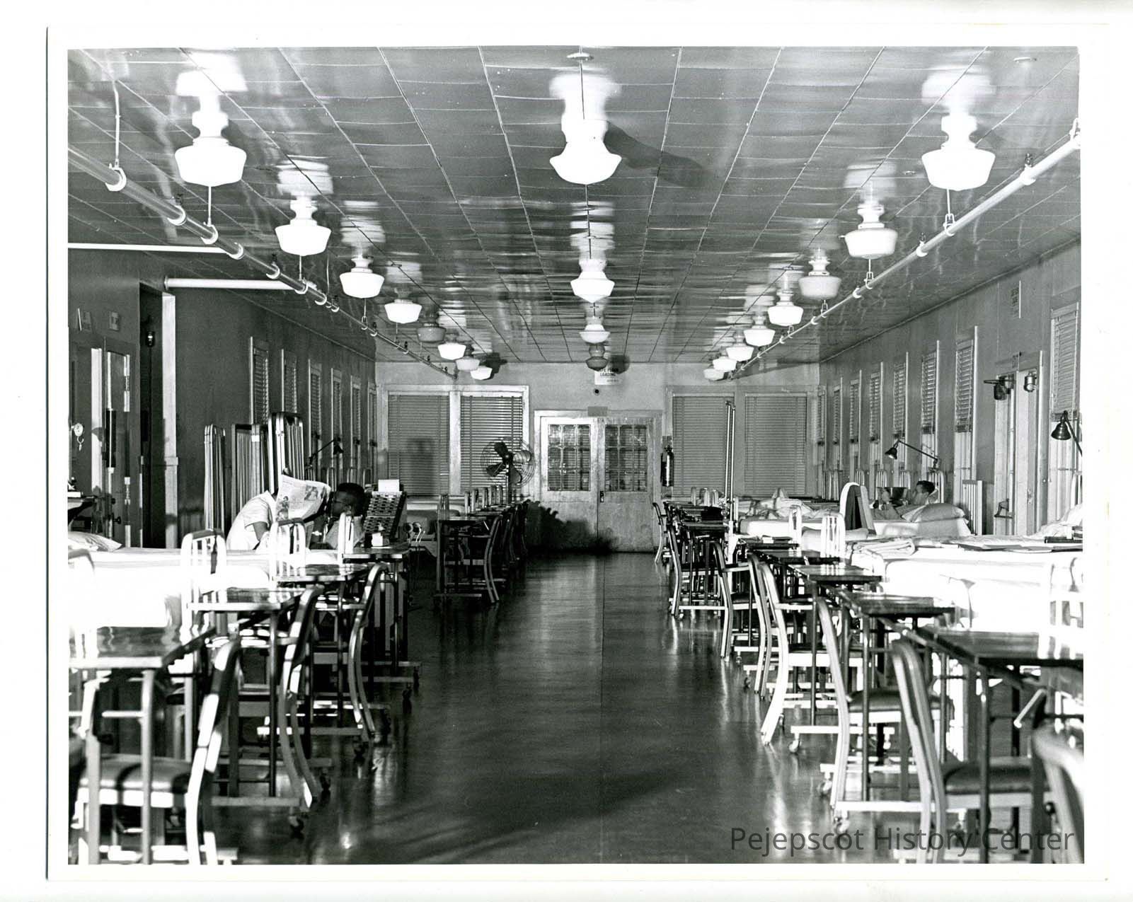 "BNAS''s hospital has a 36 bed ward for military patients which can be expanded to accommodate 200 in an emergency." The back bears three stamps "U.S NAVAL AIR STATION BRUNSWICK, MAINE", "OFFICIAL PHOTOGRAPH NOT TO BE USED FOR PUBLICATION BY ORDER OF THE CHIEF OF NAVAL OPERATIONS", and "RELEASED IF PUBLISHED CREDIT MUST BE GIVEN AS FOLLOWS OFFICIAL PHOTOGRAPH U.S. NAVY." Undated