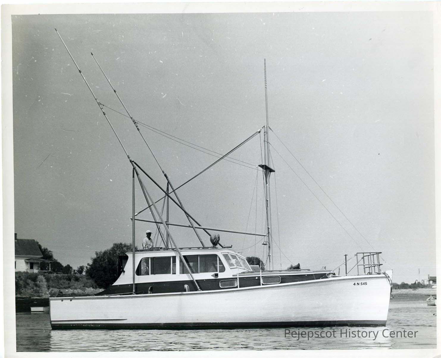 A photo of a large boat at Mackerel Cove on Bailey Island. Undated